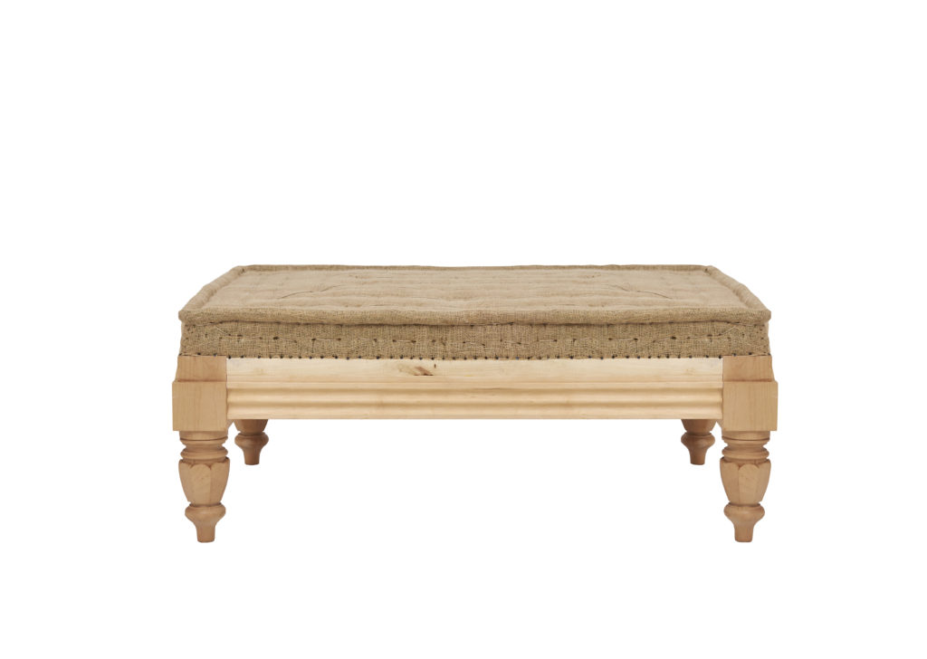 Las patas torneadas en madera vista potencian el efecto acabado/inacabado rústico.