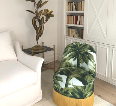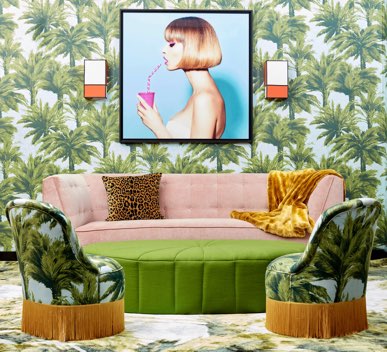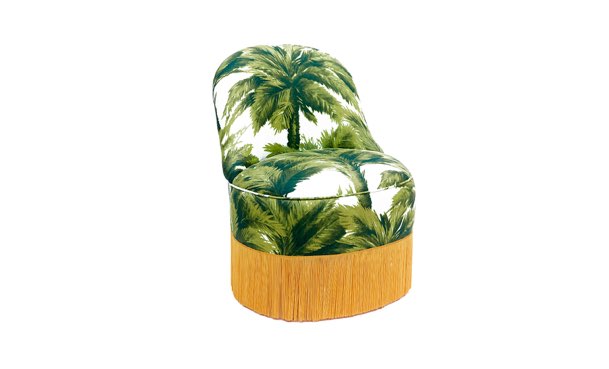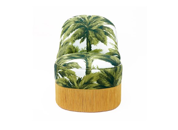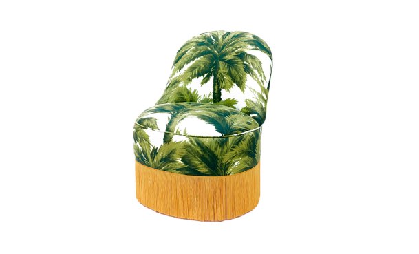The Mia armchair takes us directly to glamorous Hollywood. Its palm print and its flaking finish are remarkable. Draws attention the mix of influences and styles that are present in the design of the armchair.