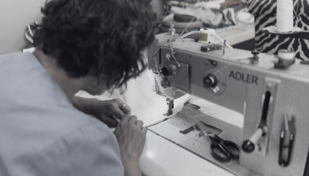 Lourdes, una de nuestras expertas costureras, trabaja junto a las máquinas de coser en su habitual puesto en el taller. Su labor es crucial, ya que da forma y vida a las fundas y telas que recubren nuestros muebles. En este momento, está cosiendo la funda de un sillón que debe ser removible para facilitar su limpieza o sustitución, asegurando así la practicidad y durabilidad de nuestros productos en el día a día de nuestros clientes.